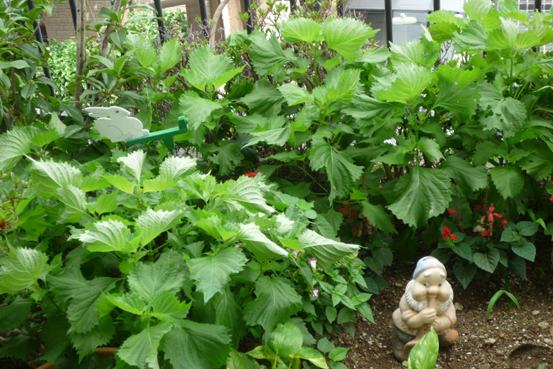 自宅でも、ちっちゃなスペースに青じその葉っぱが