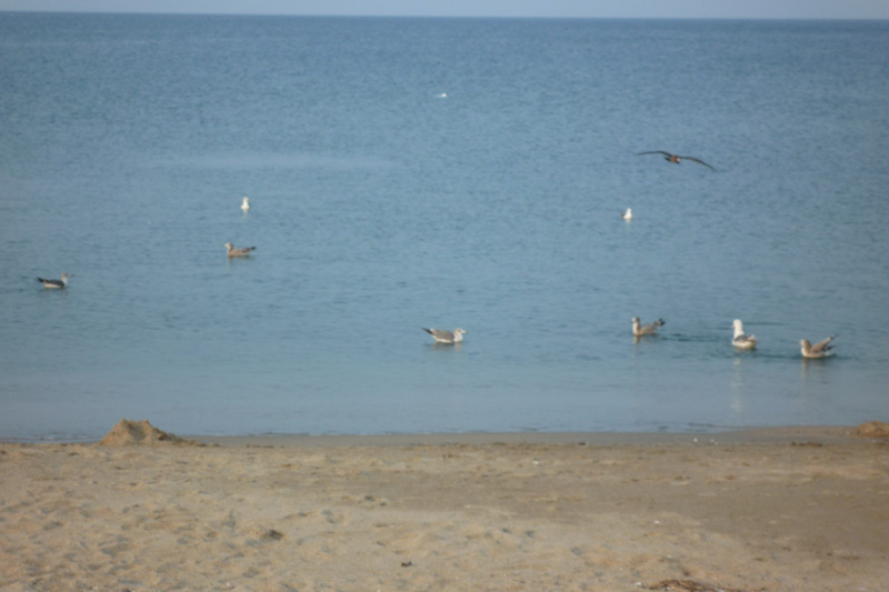 一面広がる海を前に、鳥が魚を獲ってる姿をゆっくり